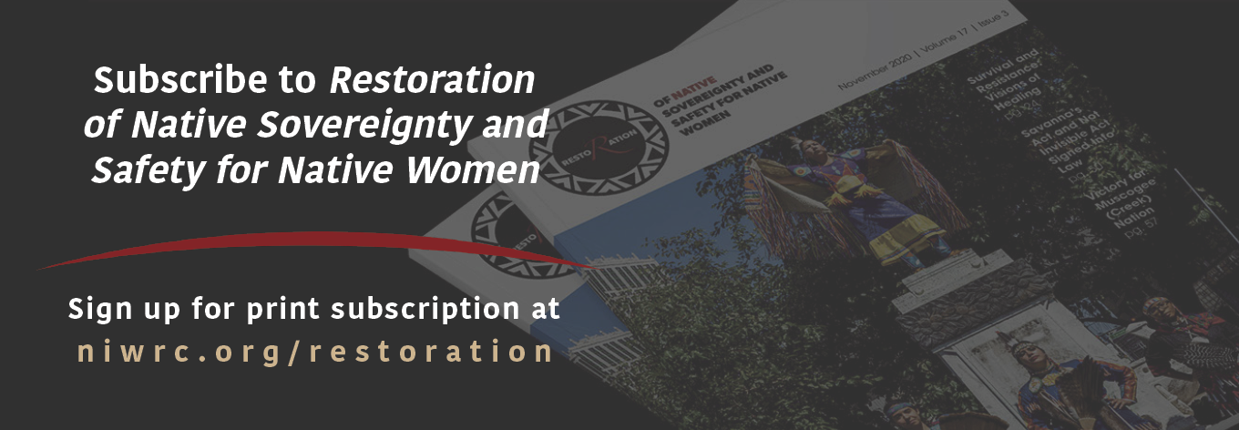 In February 2004, three months after the birth of the TF and nineteen years ago, the NCAI, Sacred Circle, and Clan Star organized an NCAI Legislative Reception and launched Restoration of Native Sovereignty and Safety for Native Women Magazine and initiatives restoring safety and dignity to Native women. Restoration has been a critical communication bridge and tool for social change informing and engaging with Tribal, state, and federal policymakers from the unique perspectives of Indigenous survivors, advocates, leaders, organizations, and allies. Our task for the next decade is to identify and organize the national platform of issues, systemic barriers, reforms, and social changes that will continue to restore the sovereignty of Tribal and Native Hawaiian Nations and the safety and dignity of Indigenous women.